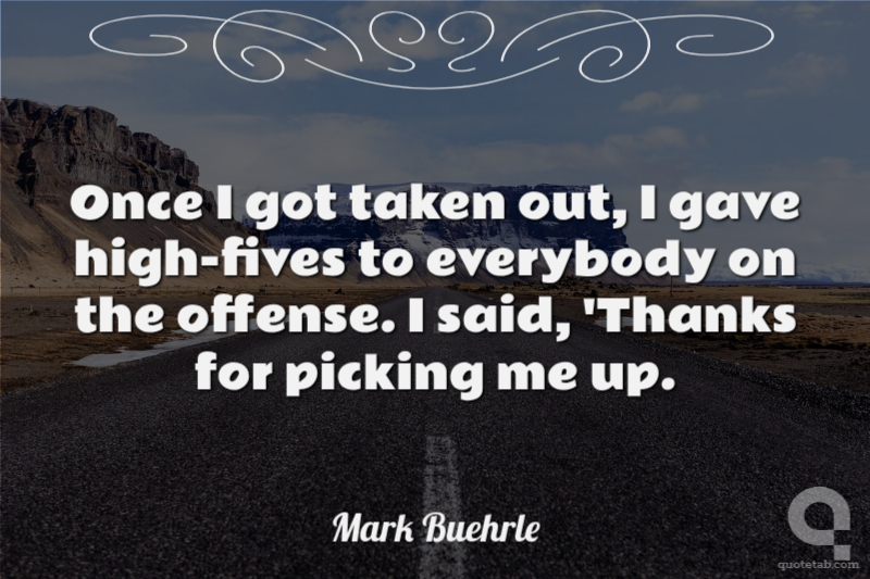 Once I got taken out, I gave high-fives to everybody on the offense. I said, 'Thanks for picking me up.