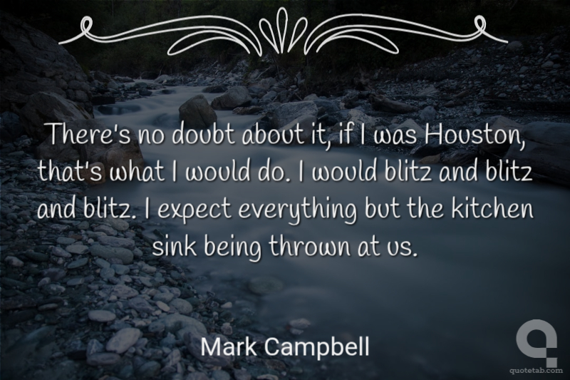 There's no doubt about it, if I was Houston, that's what I would do. I would blitz and blitz and blitz. I expect everything but the kitchen sink being thrown at us.