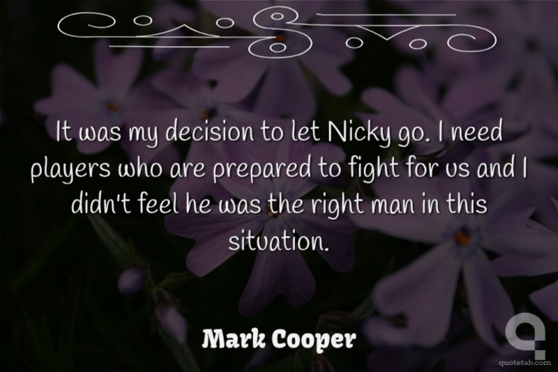 It was my decision to let Nicky go. I need players who are prepared to fight for us and I didn't feel he was the right man in this situation.