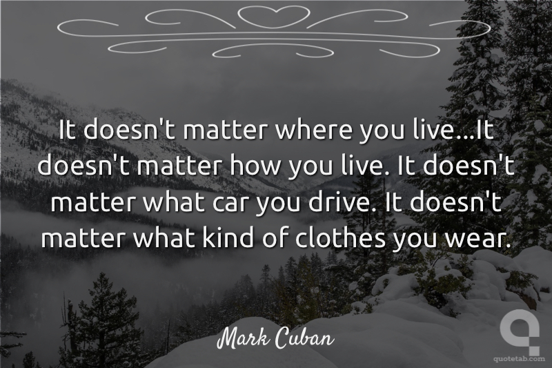 It doesn't matter where you live...It doesn't matter how you live. It doesn't matter what car you drive. It doesn't matter what kind of clothes you wear.