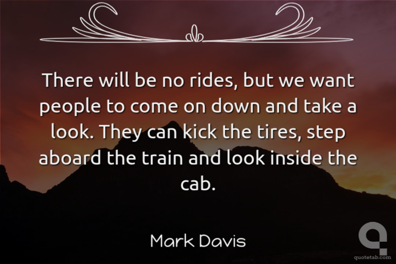 There will be no rides, but we want people to come on down and take a look. They can kick the tires, step aboard the train and look inside the cab.