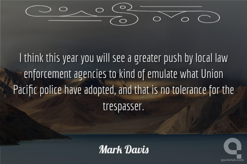 I think this year you will see a greater push by local law enforcement agencies to kind of emulate what Union Pacific police have adopted, and that is no tolerance for the trespasser.