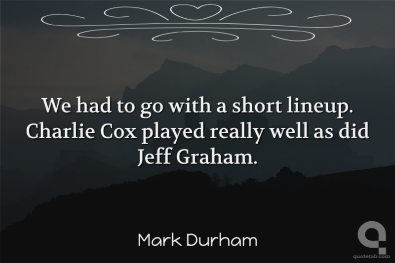 We had to go with a short lineup. Charlie Cox played really well as did Jeff Graham.