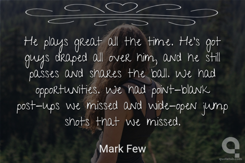 He plays great all the time. He's got guys draped all over him, and he still passes and shares the ball. We had opportunities. We had point-blank post-ups we missed and wide-open jump shots that we missed.