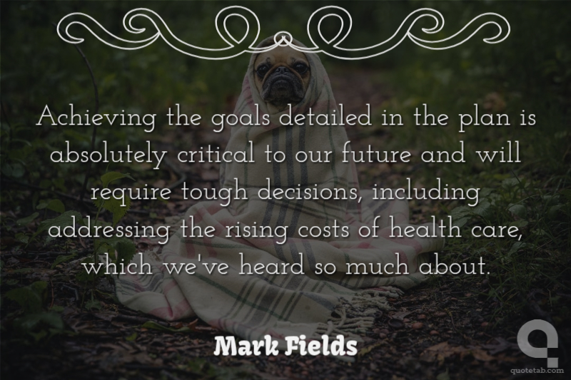 Achieving the goals detailed in the plan is absolutely critical to our future and will require tough decisions, including addressing the rising costs of health care, which we've heard so much about.