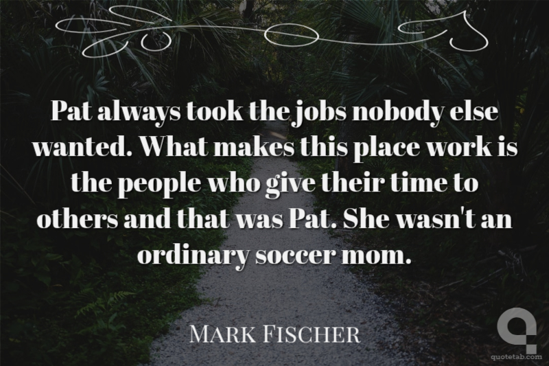 Pat always took the jobs nobody else wanted. What makes this place work is the people who give their time to others and that was Pat. She wasn't an ordinary soccer mom.
