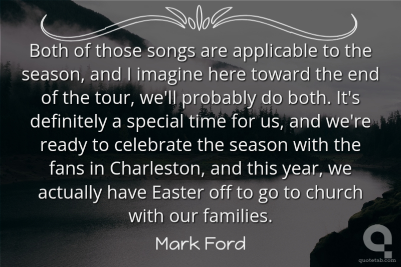 Both of those songs are applicable to the season, and I imagine here toward the end of the tour, we'll probably do both. It's definitely a special time for us, and we're ready to celebrate the season with the fans in Charleston, and this year, we actually have Easter off to go to church with our families.