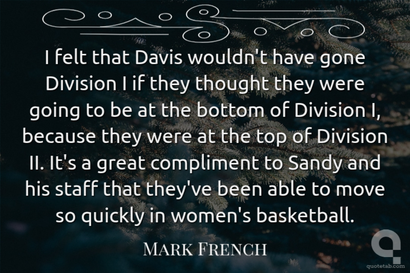 I felt that Davis wouldn't have gone Division I if they thought they were going to be at the bottom of Division I, because they were at the top of Division II. It's a great compliment to Sandy and his staff that they've been able to move so quickly in women's basketball.