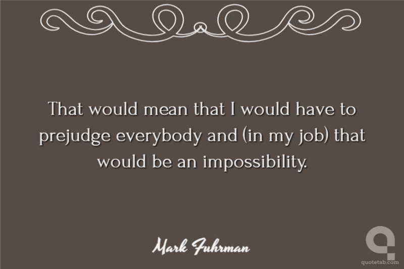 That would mean that I would have to prejudge everybody and (in my job) that would be an impossibility.