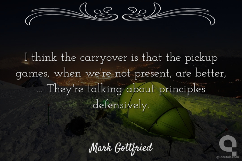 I think the carryover is that the pickup games, when we're not present, are better, ... They're talking about principles defensively.
