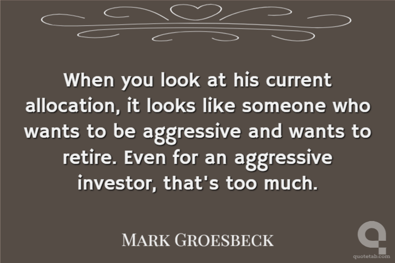When you look at his current allocation, it looks like someone who wants to be aggressive and wants to retire. Even for an aggressive investor, that's too much.