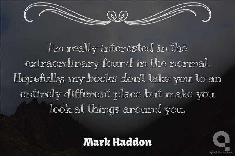 I'm really interested in the extraordinary found in the normal. Hopefully, my books don't take you to an entirely different place but make you look at things around you.