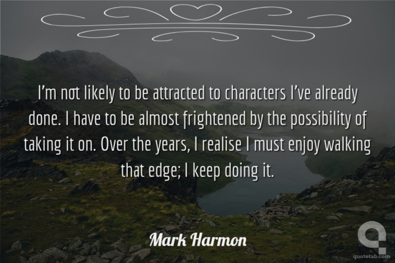 I'm not likely to be attracted to characters I've already done. I have to be almost frightened by the possibility of taking it on. Over the years, I realise I must enjoy walking that edge; I keep doing it.