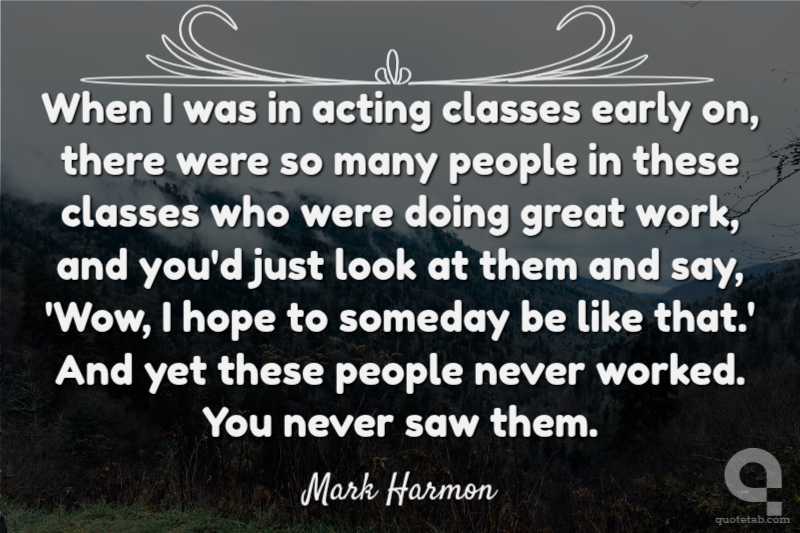When I was in acting classes early on, there were so many people in these classes who were doing great work, and you'd just look at them and say, 'Wow, I hope to someday be like that.' And yet these people never worked. You never saw them.