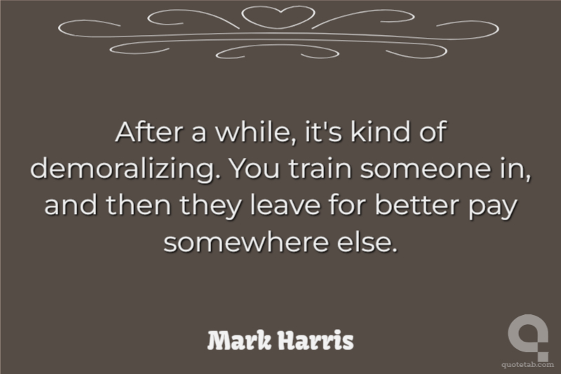 After a while, it's kind of demoralizing. You train someone in, and then they leave for better pay somewhere else.
