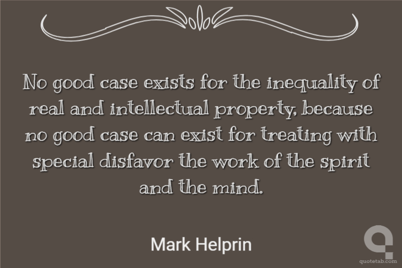 No good case exists for the inequality of real and intellectual property, because no good case can exist for treating with special disfavor the work of the spirit and the mind.