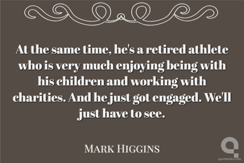 At the same time, he's a retired athlete who is very much enjoying being with his children and working with charities. And he just got engaged. We'll just have to see.