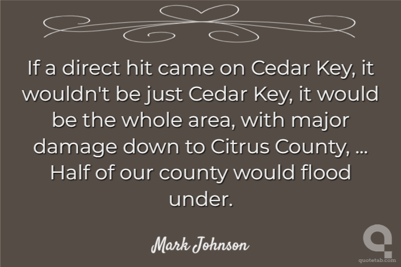 If a direct hit came on Cedar Key, it wouldn't be just Cedar Key, it would be the whole area, with major damage down to Citrus County, ... Half of our county would flood under.