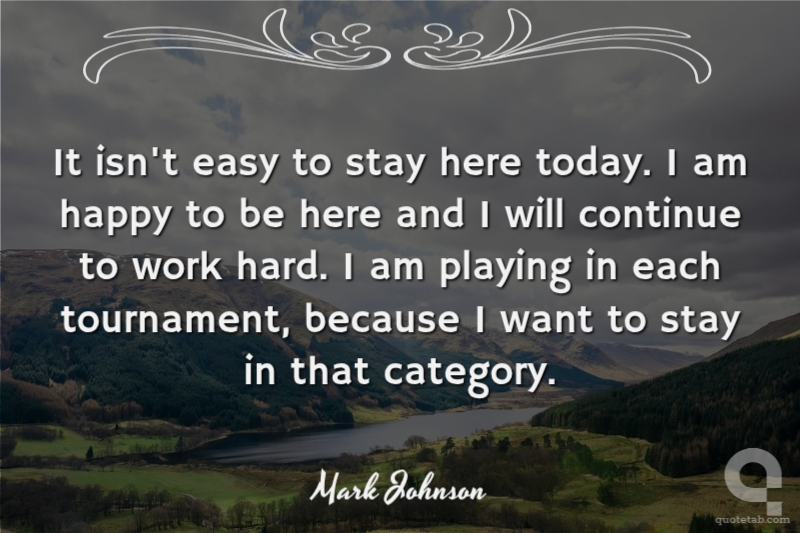 It isn't easy to stay here today. I am happy to be here and I will continue to work hard. I am playing in each tournament, because I want to stay in that category.