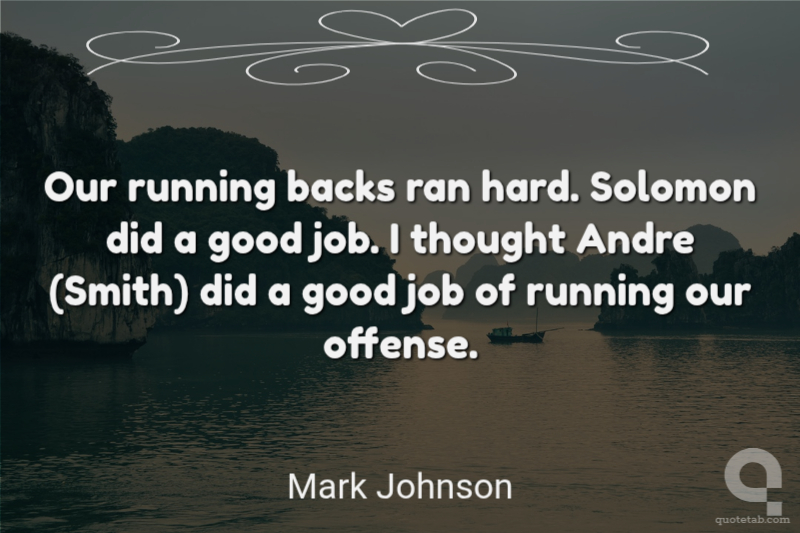 Our running backs ran hard. Solomon did a good job. I thought Andre (Smith) did a good job of running our offense.