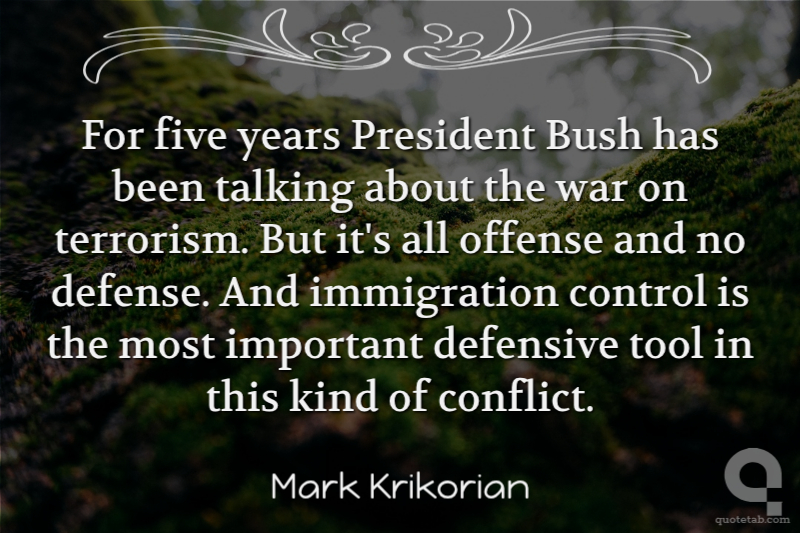 For five years President Bush has been talking about the war on terrorism. But it's all offense and no defense. And immigration control is the most important defensive tool in this kind of conflict.