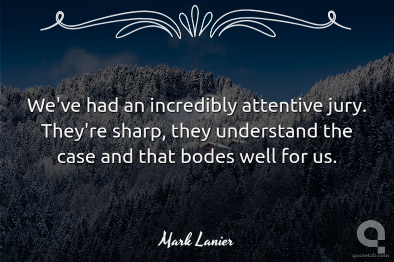 We've had an incredibly attentive jury. They're sharp, they understand the case and that bodes well for us.