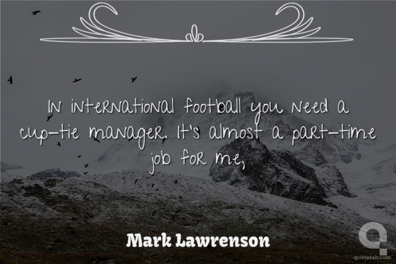 In international football you need a cup-tie manager. It's almost a part-time job for me,
