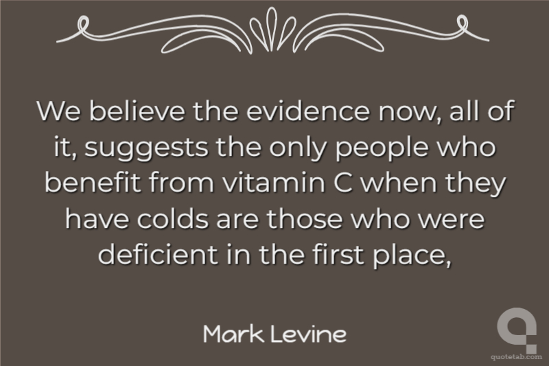 We believe the evidence now, all of it, suggests the only people who benefit from vitamin C when they have colds are those who were deficient in the first place,