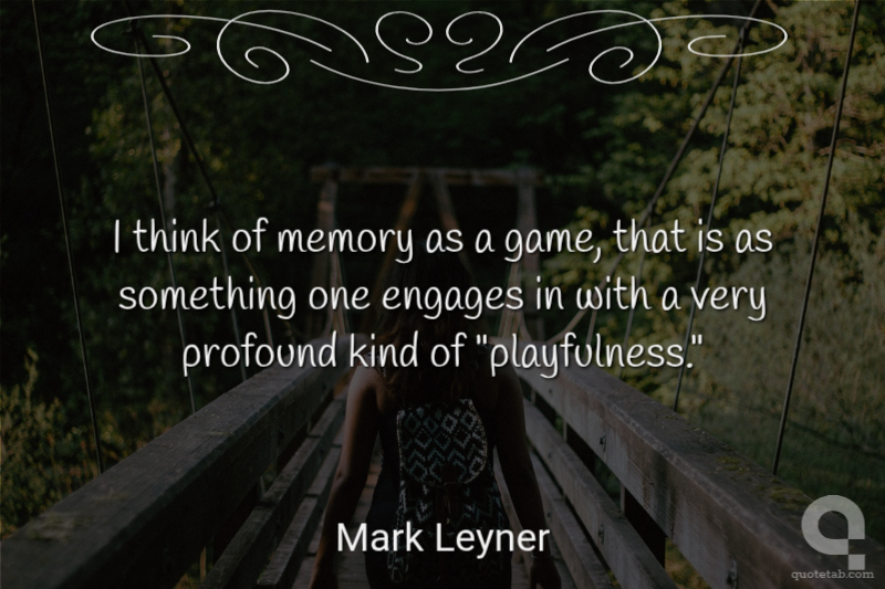I think of memory as a game, that is as something one engages in with a very profound kind of "playfulness."