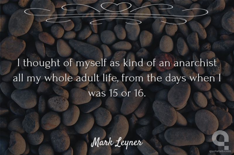 I thought of myself as kind of an anarchist all my whole adult life, from the days when I was 15 or 16.