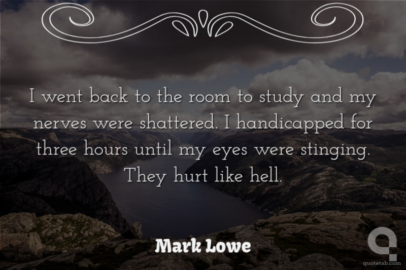 I went back to the room to study and my nerves were shattered. I handicapped for three hours until my eyes were stinging. They hurt like hell.