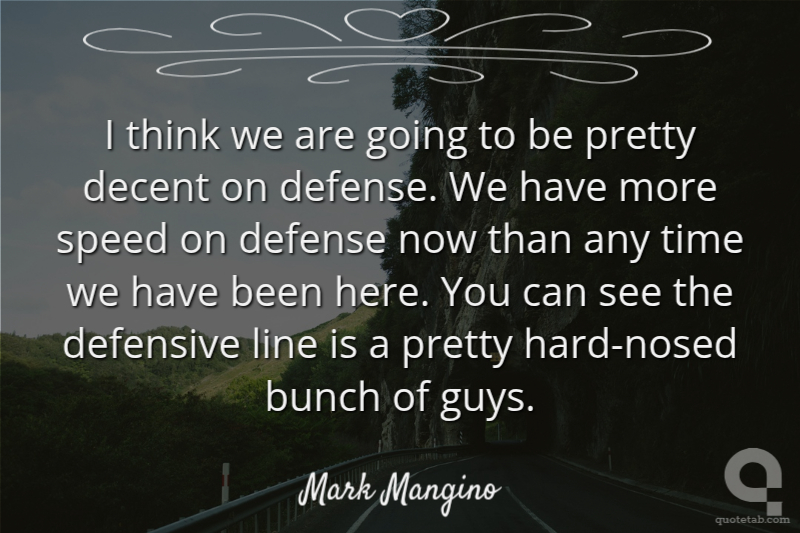 I think we are going to be pretty decent on defense. We have more speed on defense now than any time we have been here. You can see the defensive line is a pretty hard-nosed bunch of guys.