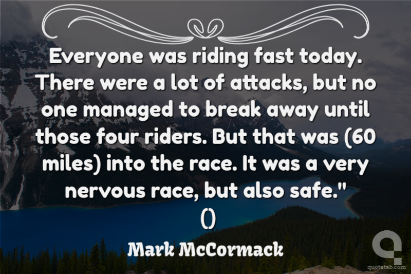 Everyone was riding fast today. There were a lot of attacks, but no one managed to break away until those four riders. But that was (60 miles) into the race. It was a very nervous race, but also safe." ()