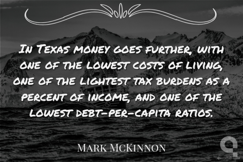 In Texas money goes further, with one of the lowest costs of living, one of the lightest tax burdens as a percent of income, and one of the lowest debt-per-capita ratios.