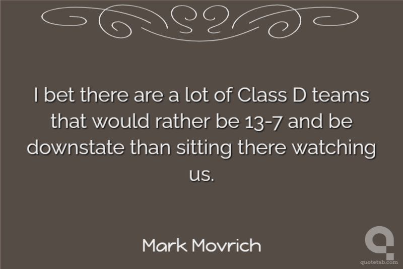 I bet there are a lot of Class D teams that would rather be 13-7 and be downstate than sitting there watching us.