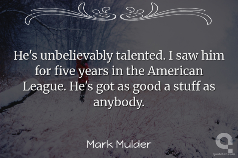 He's unbelievably talented. I saw him for five years in the American League. He's got as good a stuff as anybody.