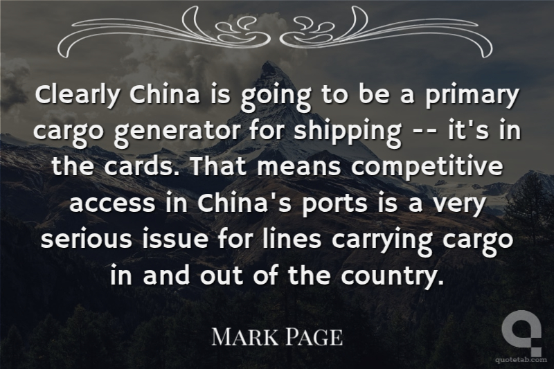 Clearly China is going to be a primary cargo generator for shipping -- it's in the cards. That means competitive access in China's ports is a very serious issue for lines carrying cargo in and out of the country.