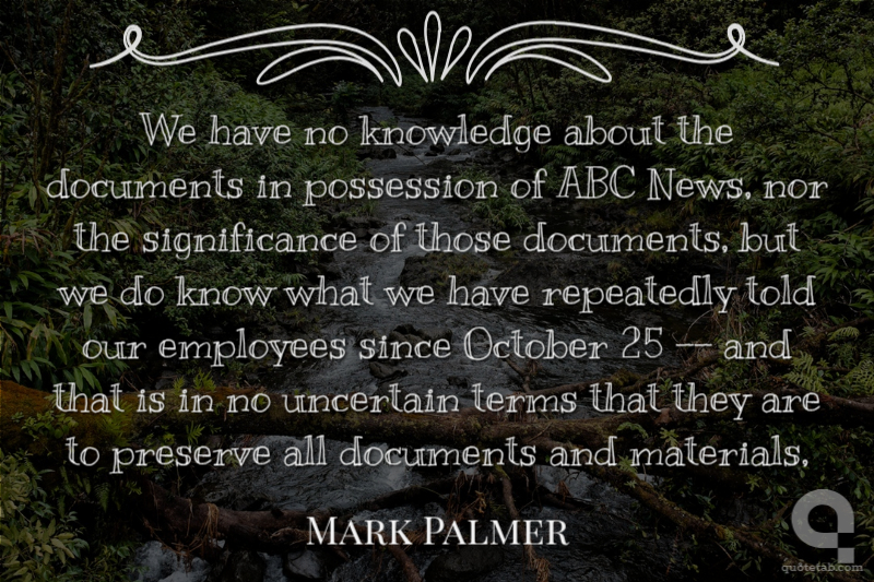 We have no knowledge about the documents in possession of ABC News, nor the significance of those documents, but we do know what we have repeatedly told our employees since October 25 -- and that is in no uncertain terms that they are to preserve all documents and materials,