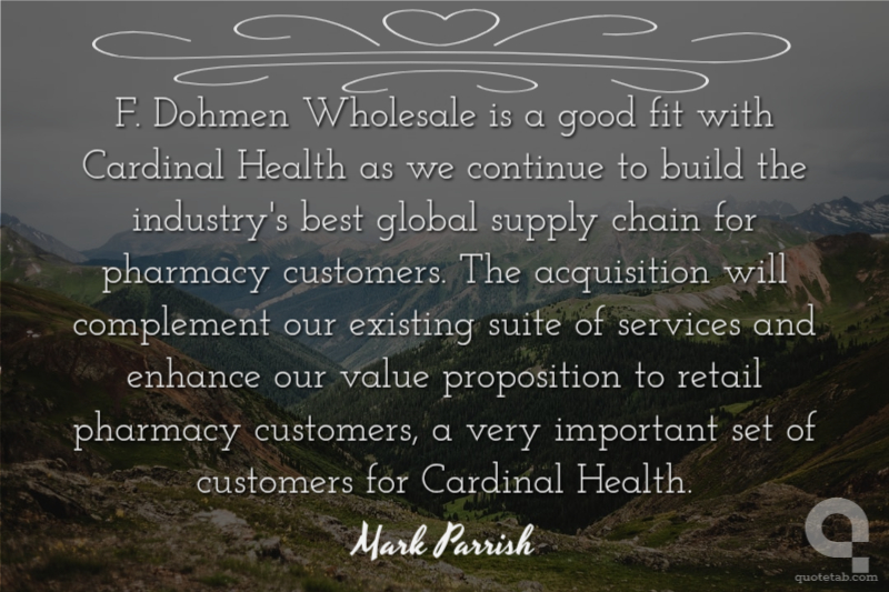 F. Dohmen Wholesale is a good fit with Cardinal Health as we continue to build the industry's best global supply chain for pharmacy customers. The acquisition will complement our existing suite of services and enhance our value proposition to retail pharmacy customers, a very important set of customers for Cardinal Health.