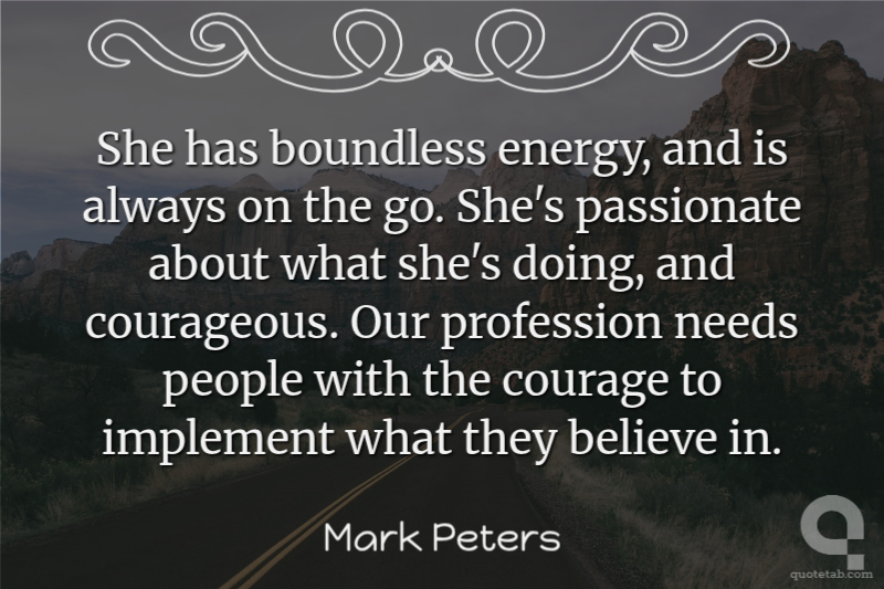 She has boundless energy, and is always on the go. She's passionate about what she's doing, and courageous. Our profession needs people with the courage to implement what they believe in.