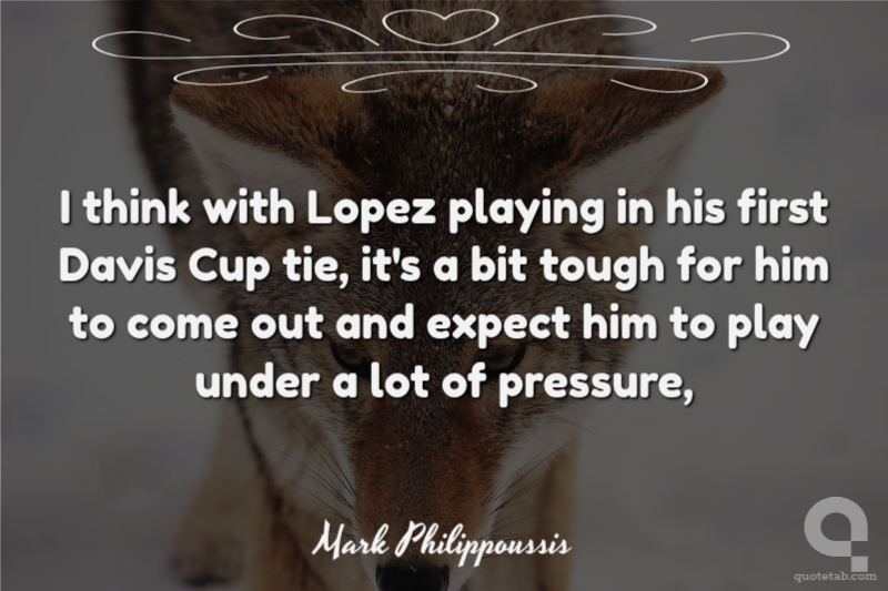 I think with Lopez playing in his first Davis Cup tie, it's a bit tough for him to come out and expect him to play under a lot of pressure,