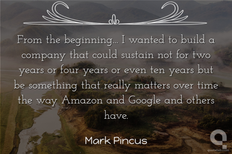 From the beginning... I wanted to build a company that could sustain not for two years or four years or even ten years but be something that really matters over time the way Amazon and Google and others have.
