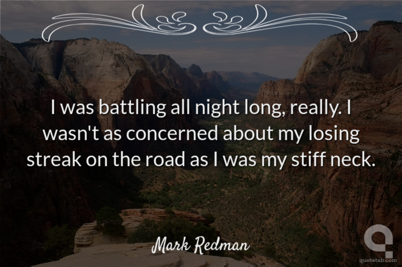 I was battling all night long, really. I wasn't as concerned about my losing streak on the road as I was my stiff neck.