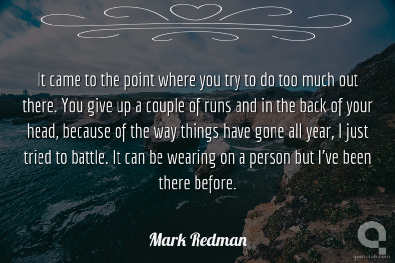 It came to the point where you try to do too much out there. You give up a couple of runs and in the back of your head, because of the way things have gone all year, I just tried to battle. It can be wearing on a person but I've been there before.
