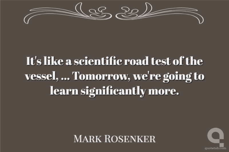 It's like a scientific road test of the vessel, ... Tomorrow, we're going to learn significantly more.