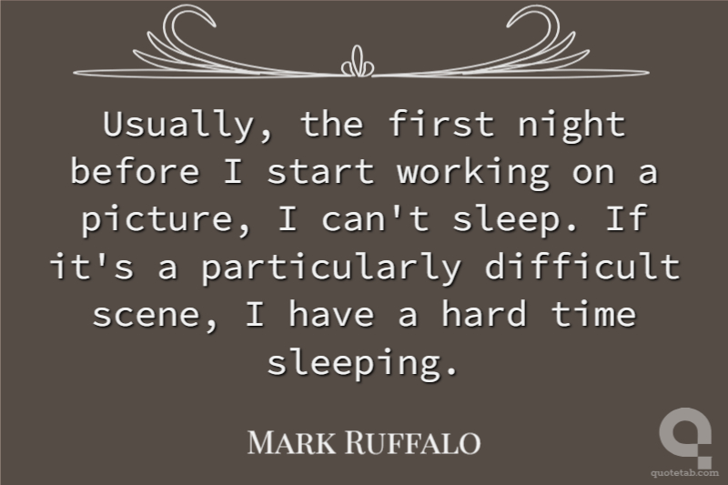Usually, the first night before I start working on a picture, I can't sleep. If it's a particularly difficult scene, I have a hard time sleeping.