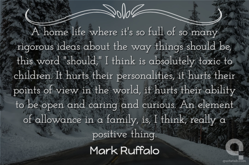 A home life where it's so full of so many rigorous ideas about the way things should be, this word "should," I think is absolutely toxic to children. It hurts their personalities, it hurts their points of view in the world, it hurts their ability to be open and caring and curious. An element of allowance in a family, is, I think, really a positive thing.