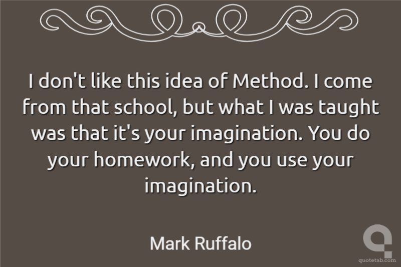 I don't like this idea of Method. I come from that school, but what I was taught was that it's your imagination. You do your homework, and you use your imagination.