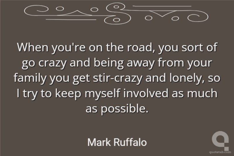 When you're on the road, you sort of go crazy and being away from your family you get stir-crazy and lonely, so I try to keep myself involved as much as possible.