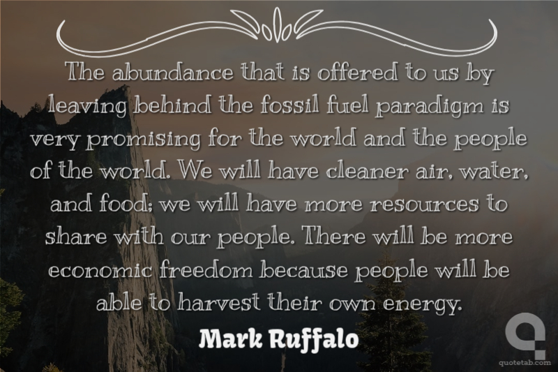 The abundance that is offered to us by leaving behind the fossil fuel paradigm is very promising for the world and the people of the world. We will have cleaner air, water, and food; we will have more resources to share with our people. There will be more economic freedom because people will be able to harvest their own energy.